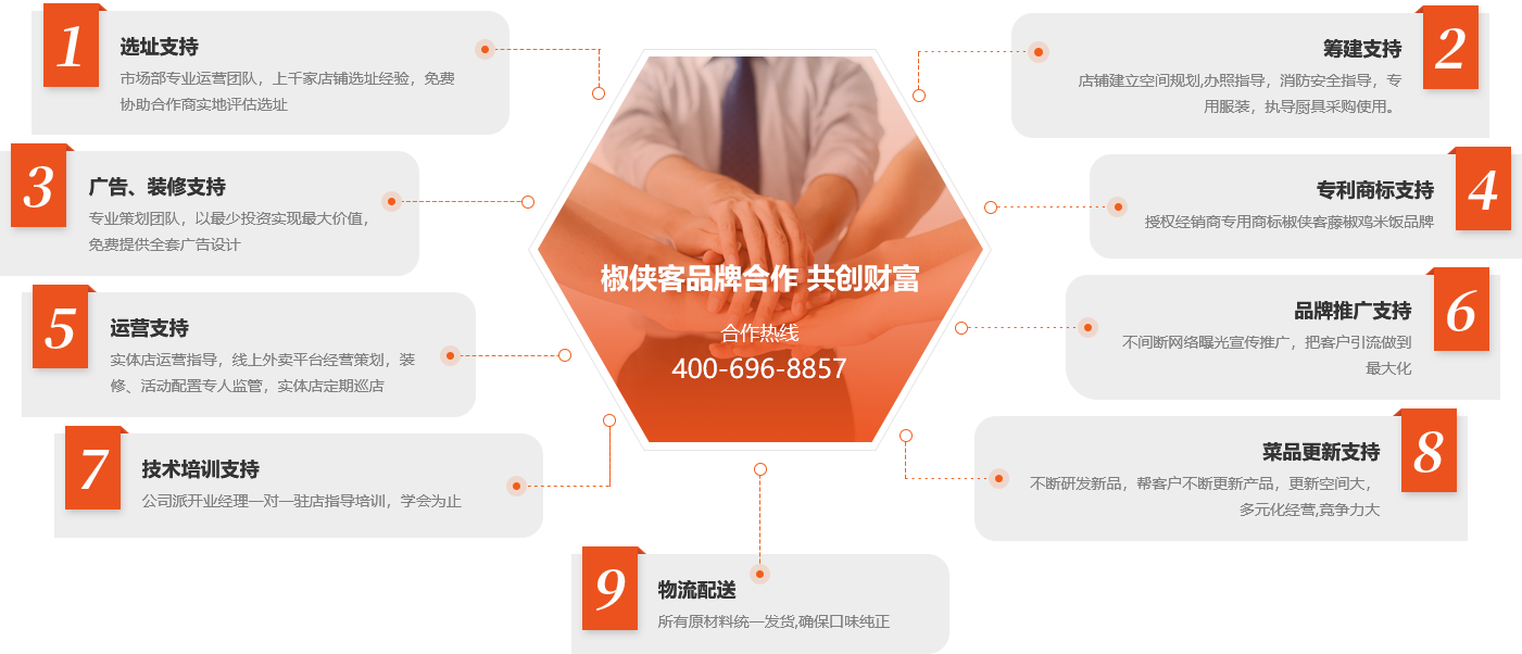 合作流程:加盟咨询:了解项目详情-实地考察:查看周边人员高峰期流动消费情况-签约:敲定合作方案-店面选址:考察结束选择店面装修-店面开业:装修指导协助开业-后期支持:运营指导,前期到后期开业营业全程指导